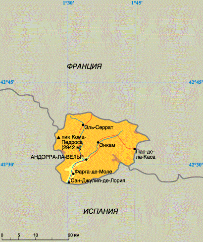 Андорра — карликовое княжество, спрятавшееся между Францией и Испанией. Еще недавно она была закрытой страной, но сегодня это процветающее туристическое государство. Основная достопримечательность страны, основное ее богатство — горы, самые высокие горы в Европе. Если искать Андорру на карте мира, ее сложно увидеть. Подобно другим крохотным государствам, она очень мала, Андорра на карте мира — крохотная точка. Но как бы ни была мала Андорра, карта страны обязательно нужна путешественникам, и ее можно найти здесь, на сайте, и, выбирая себе гостиницу, вы можете сразу свериться с картой, посмотреть, где он находится, насколько далеко или близко от приглянувшегося вам курорта. Обязательно посетите Андорру, чудесную маленькую страну, уютную и красивую. Время, проведенное там, вы будете часто вспоминать, рассматривая фотографии, сделанные вами на отдыхе.